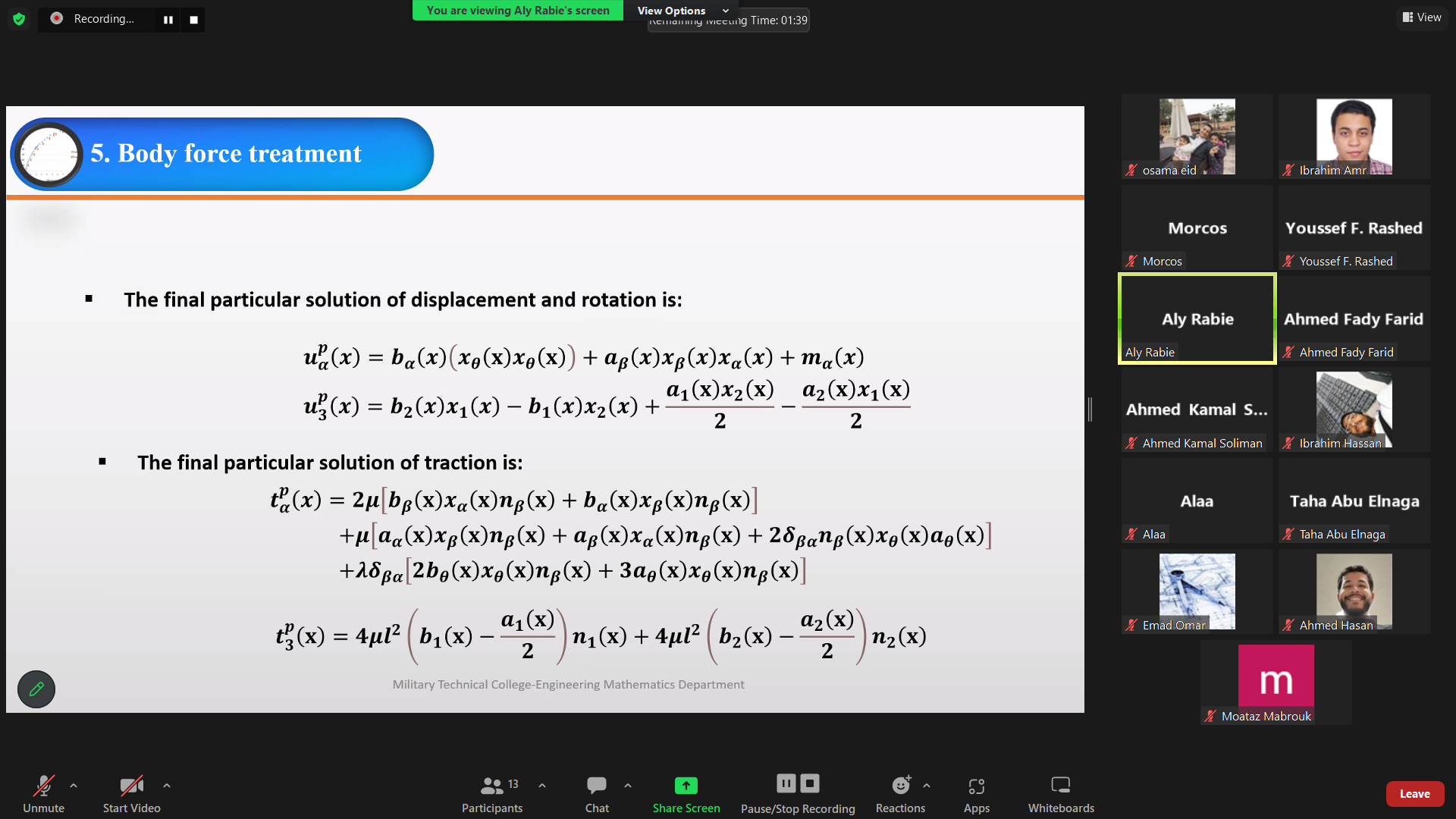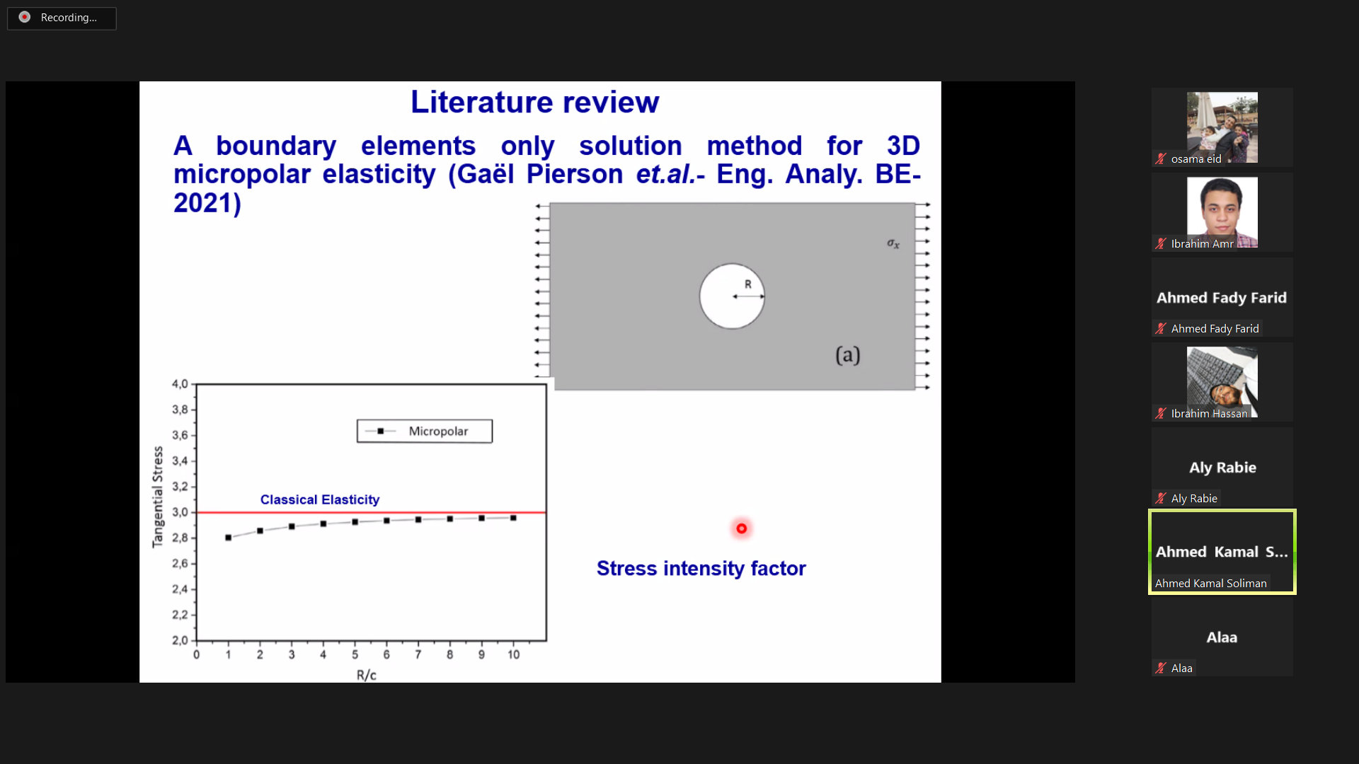 | 21:00 - 21:30 | Eng. Ali Rabie | 2D Couple-stress theory by meshless technique |