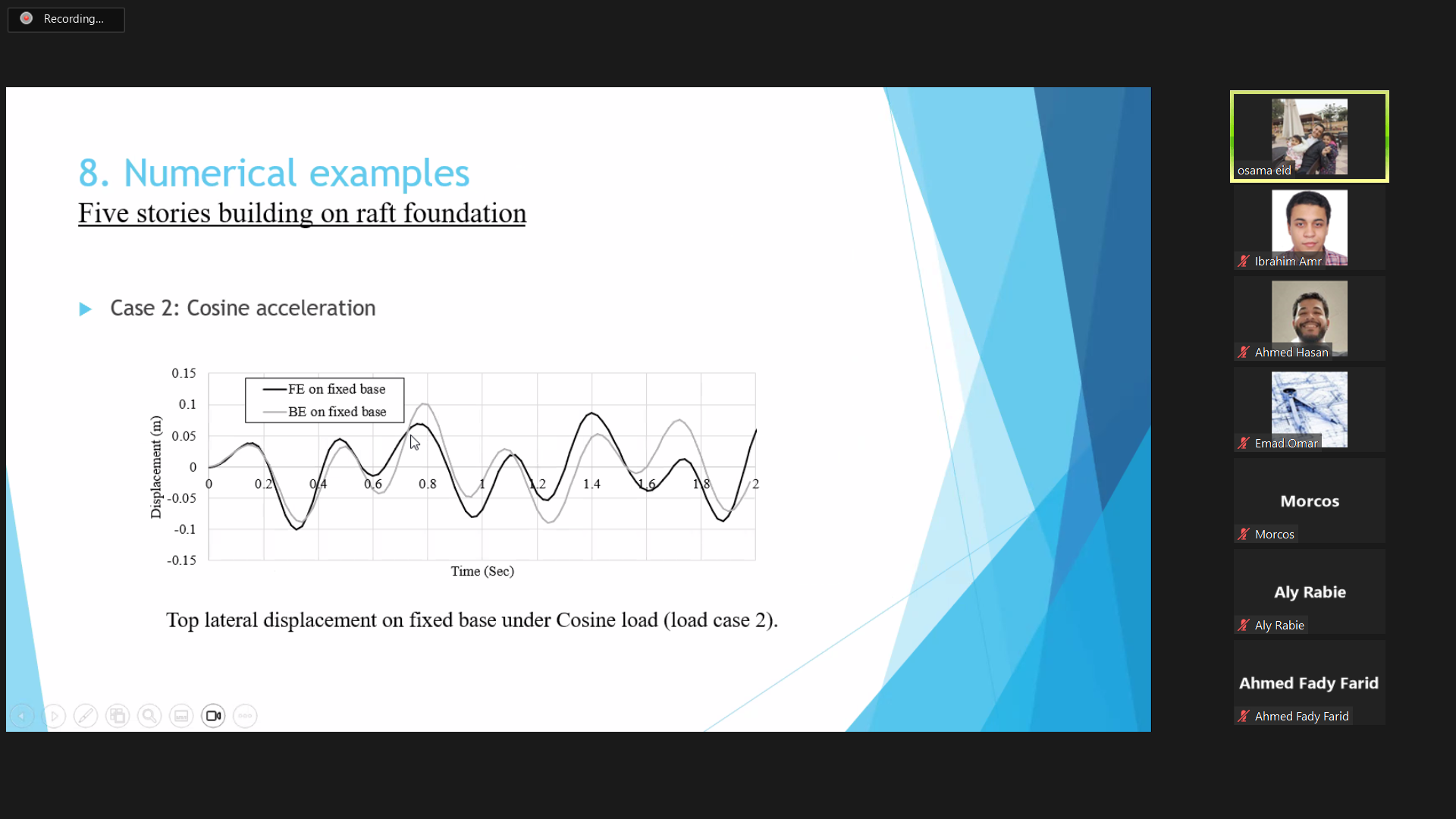 | 20:00 - 20:30 | Eng. Osama Eid | Time Domain Analysis for structures including Soil-Structure Interaction |