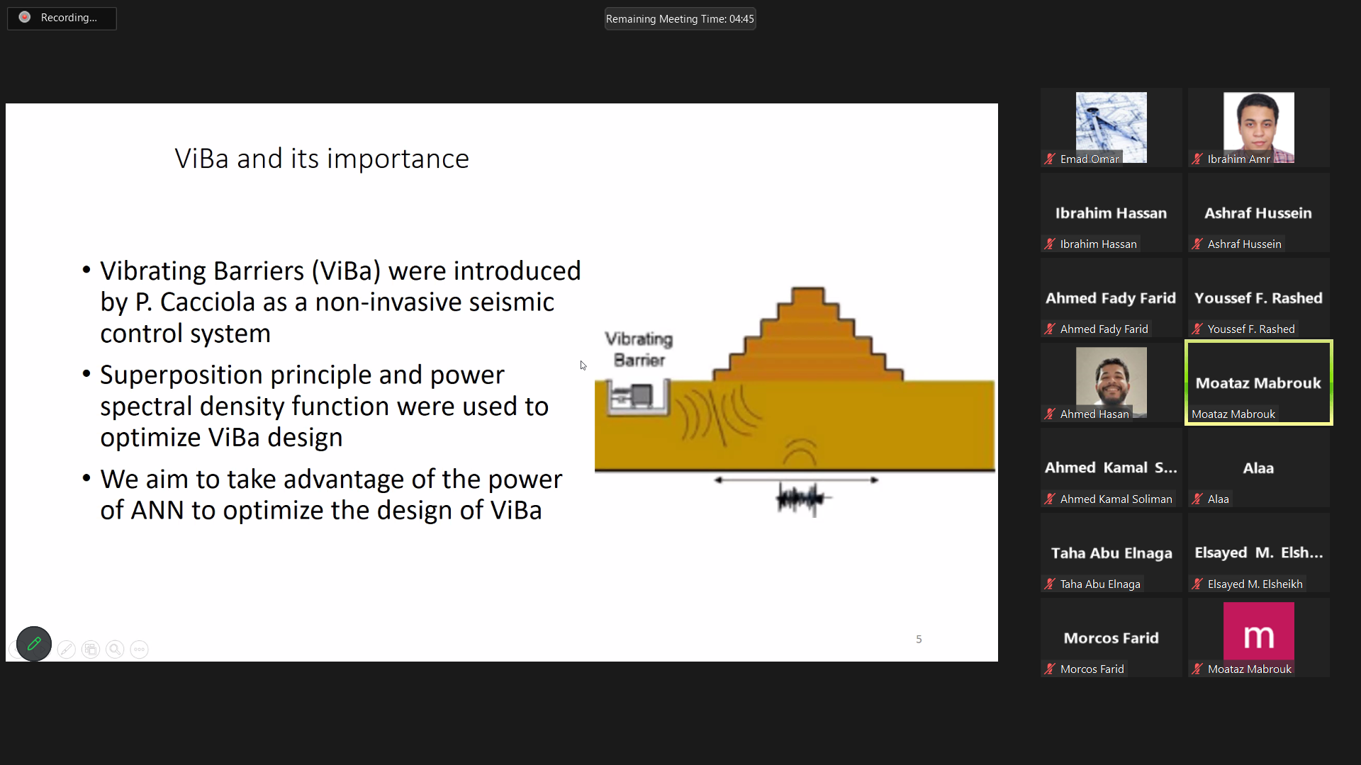 | 00:00 - 00:30 | Eng. Moataz Mabrouk | Using ANN for the Design of ViBa for protection of Saqqara Pyramid |